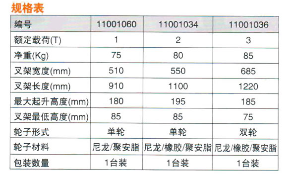 手動液壓搬運車產(chǎn)品規(guī)格:
