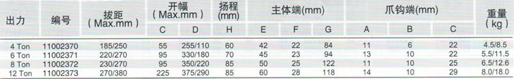 4、操作出力,有自4Ton-12Ton,可供選擇。