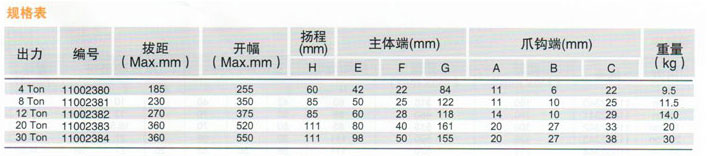 分離式液壓拉馬產品規格: