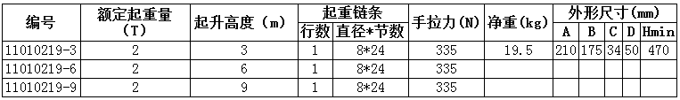起重量2噸的手拉葫蘆技術(shù)參數(shù):